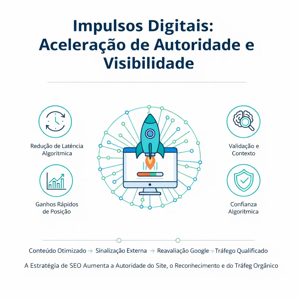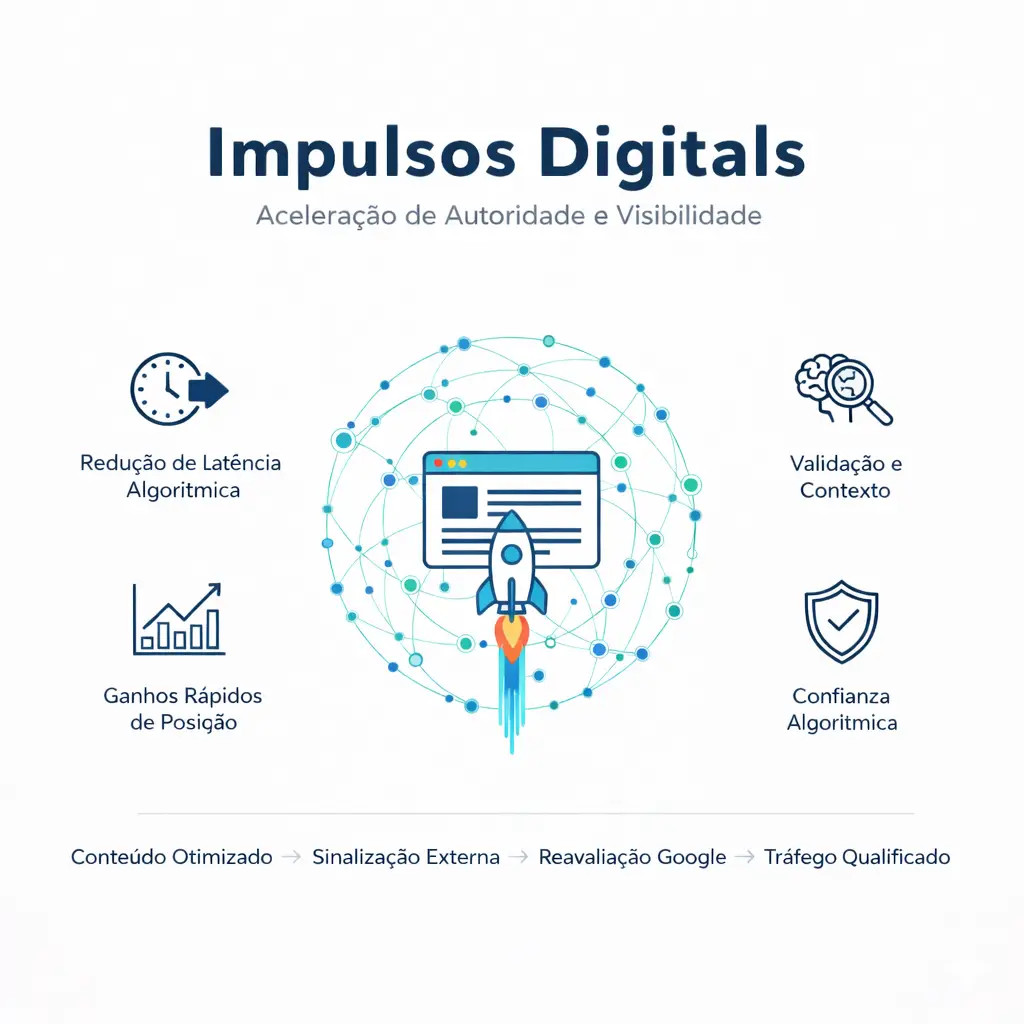 Os impulsos digitais existem para resolver um problema muito concreto: conteúdo e páginas que estão corretas, mas não arrancam. Em muitos casos, o site tem boa estrutura, bons textos e intenção bem definida, mas o Google demora a reagir. Falta sinal. Falta contexto externo. Falta o empurrão inicial que quebra a inércia algorítmica.