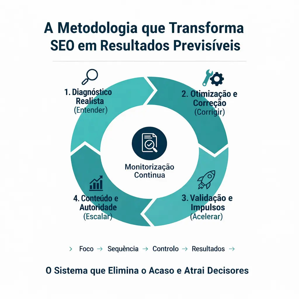 No conjunto, esta metodologia transforma SEO num processo racional e previsível. Não elimina o fator tempo, mas elimina o acaso. É isso que filtra curiosos e atrai decisores: saber o que está a ser feito, em que ordem e com que lógica.