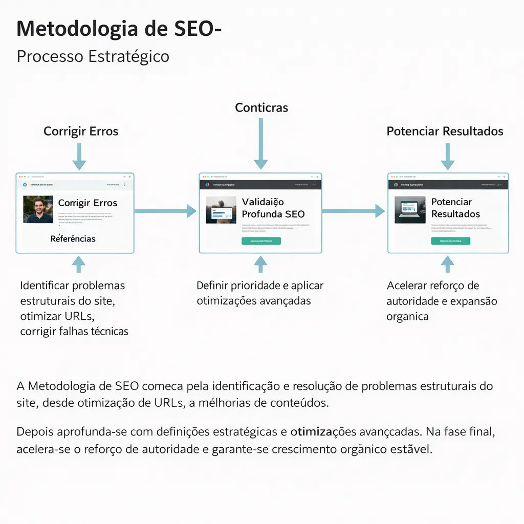 A maior falha em projetos de SEO não é falta de esforço, é falta de método. Ações soltas, decisões fora de ordem e intervenções feitas "porque sim" criam ruído, desperdiçam tempo e tornam os resultados imprevisíveis. Esta metodologia existe para resolver exatamente isso: trazer lógica, sequência e critério a um processo que muitas vezes é tratado de forma caótica.